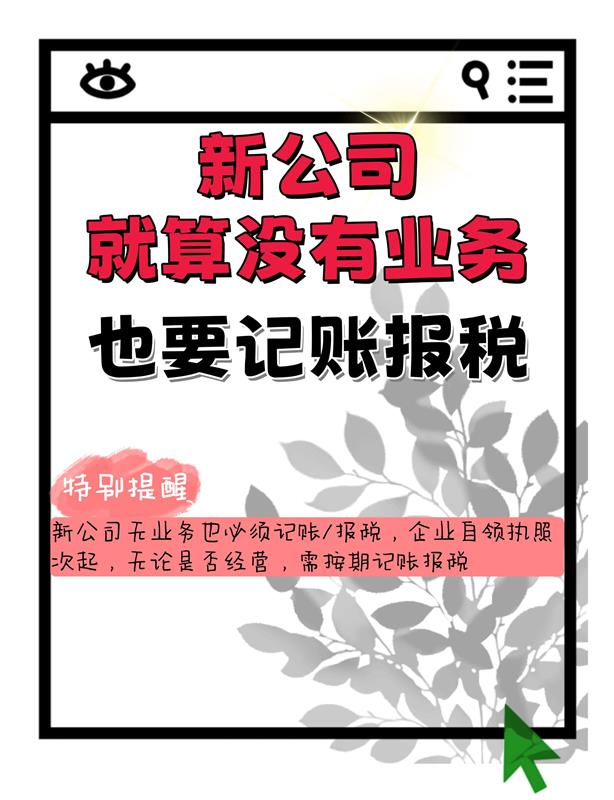 新公司无业务也必须记账/报税,"零申报""不申报"(依据<<税收征收管理法>>)企业自领执照次月起,无论是否经营,需按期记账报税)
